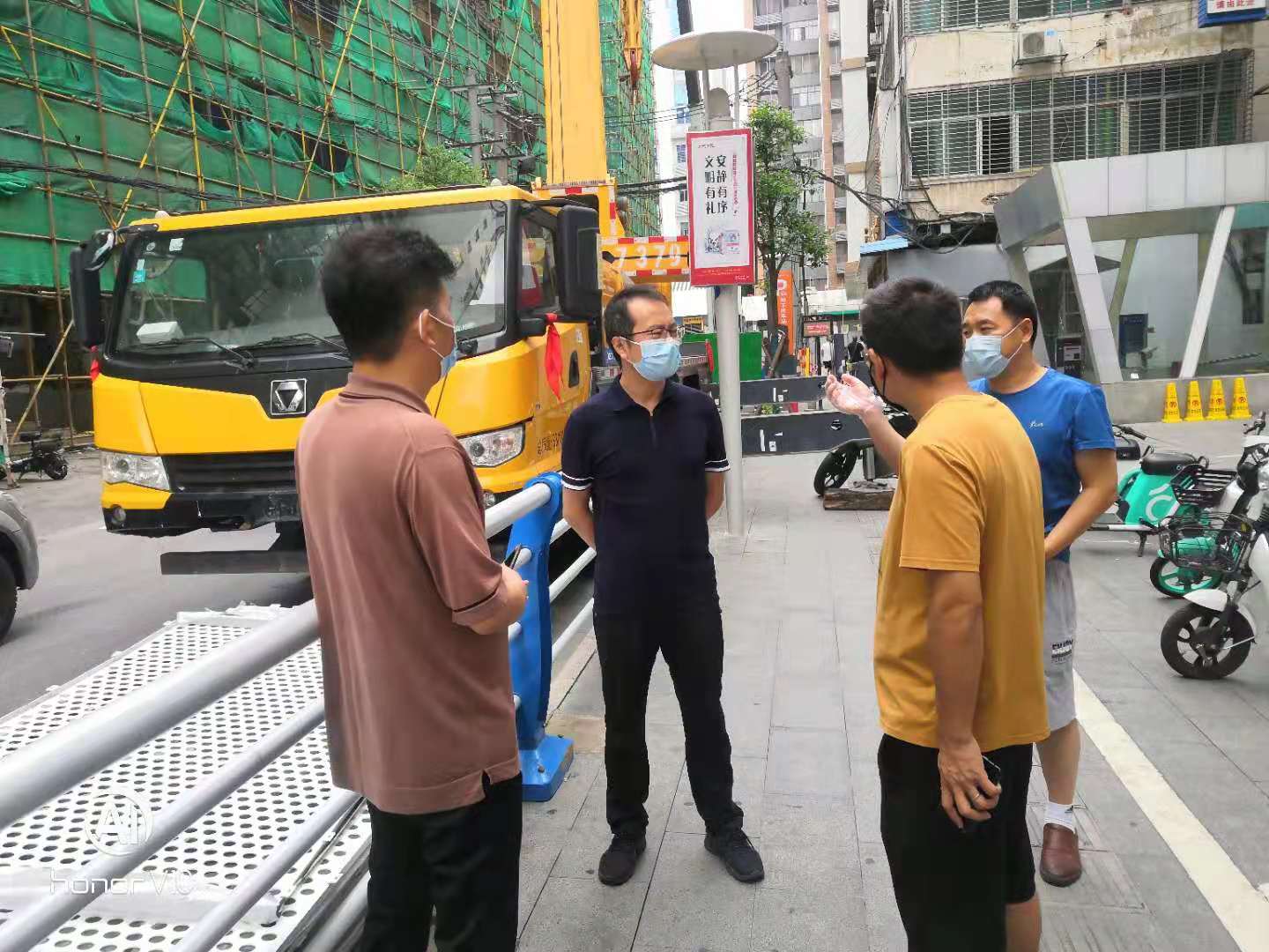 首先在中商外立面改造施工現(xiàn)場(chǎng),聽(tīng)取中鴻裝飾公司的施工進(jìn)度工作匯報(bào)后,陳施俊同志要求,在圍繞按期完成施工任務(wù)的同時(shí),要加強(qiáng)員工疫情防控知識(shí)宣傳教育,提高員工個(gè)人防護(hù)意識(shí),督促員工做好健康監(jiān)測(cè)。對(duì)施工場(chǎng)地、辦公場(chǎng)所、員工集中住宿區(qū)和食堂等重點(diǎn)場(chǎng)所要開(kāi)展常態(tài)性衛(wèi)生大掃除和消殺。